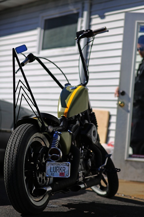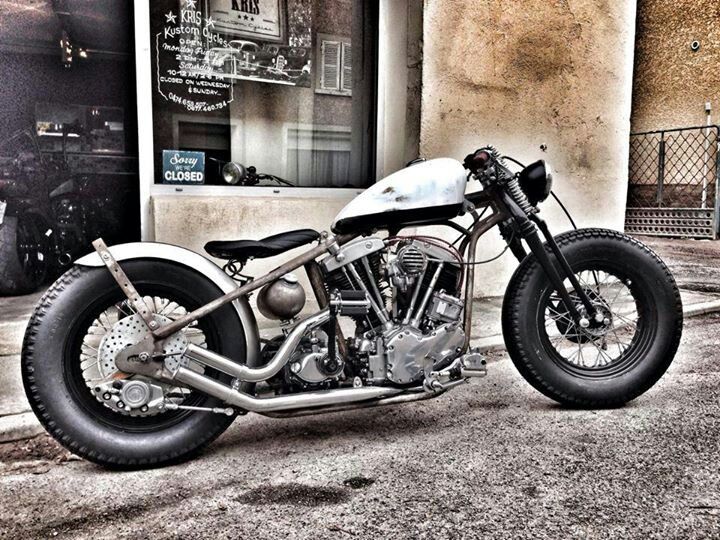 Một chiếc Bobber khá giống đời đầu, chạy động cơ Knucklehead của Harley, ghi đông Flanders 0, bình xăng nguyên gốc, vè chắn bùn bị cắt cụt, đèn hậu Sparto